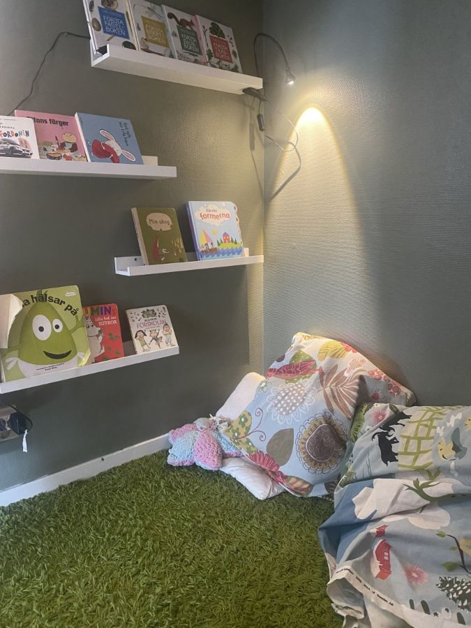 På avdelningen blåmesen huserar barn med ålder 1-2 år. Vi lägger stort fokus på att skapa en trygg start i förskolans värld. Vår lärmiljö bidrar till utforskande inom olika områden. Vi erbjuder en föränderlig lärmiljö där barnens intresse och utveckling får styra innehållet. Frukost, Lunch och mellanmål äts på avdelningen i en lugn miljö där vi kan lägga fullt fokus på att tillfredsställa individens behov. Många av barnen på blåmesen är i uppstarten med att utveckla ett verbalt språk, då är det viktigt för oss att kunna erbjuda alternativa sätt för barnen att kommunicera. Personalen är utbildad inom TAKK (tecken som stöd) vilket används för att förstärka den verbala kommunikationen. Ett annat verktyg som vi använder är bildstöd. Vi använder oss av ett bildstöds schema över de dagliga rutinerna. Vi upplever att om barnen vet vad som ska hända under dagen skapar det en trygghet för dem.